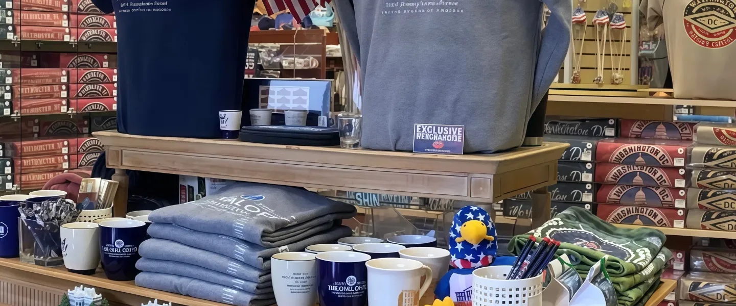 When shopping in-store, enjoy a free Oval Office photo experience behind our famous replica presidential desk. This is a one-of-a-kind DC tradition loved by visitors from around the world. Simply ask a store associate for details during your visit.