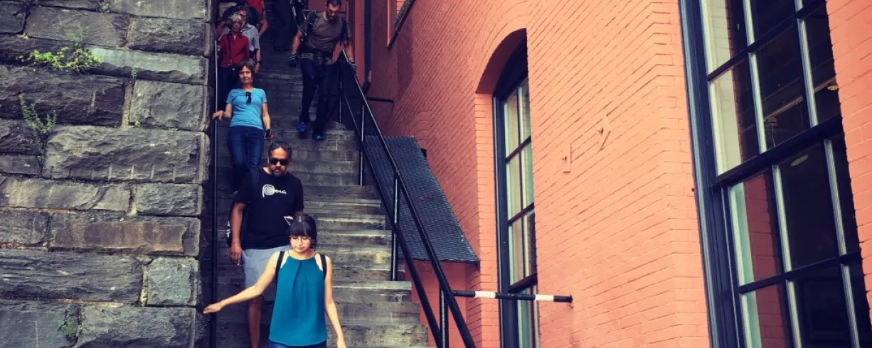 As we wind through the neighborhood’s quiet residential core, we’ll encounter a striking mix of Federal, Victorian, Second Empire, and Queen Anne architecture, alongside stately churches, tucked-away alleys, and remnants of the city's early streetcar system. Highlights include the Newton D. Baker House, once home to Jacqueline Kennedy; Alexander Graham Bell’s laboratory; the Gothic revival campus of Georgetown University, and a descent down the iconic Exorcist Steps, where film history meets urban folklore. The tour concludes along the Georgetown Waterfront, a once-industrial shoreline and now vibrant public park, in a fitting conclusion to the rags to riches transformation of Georgetown.
